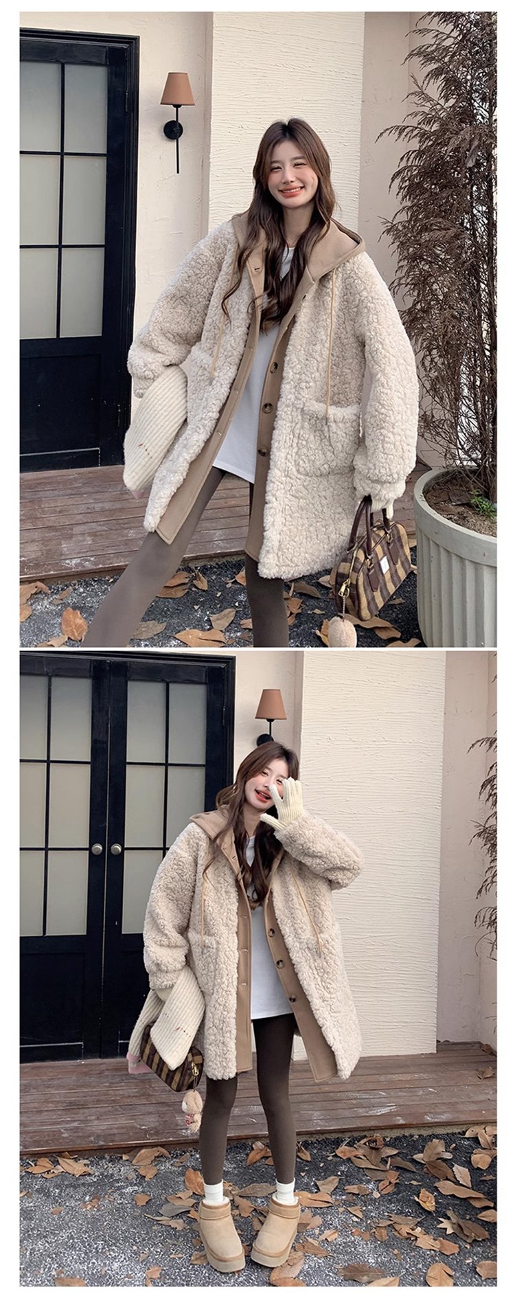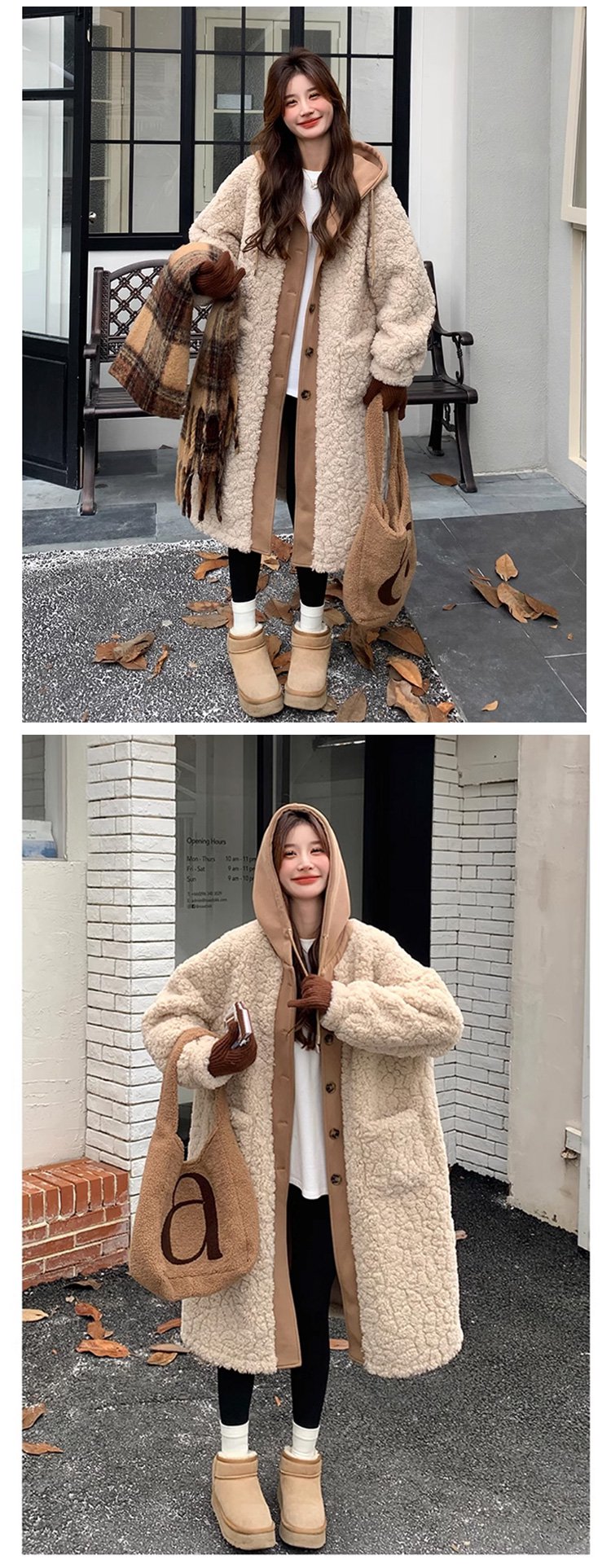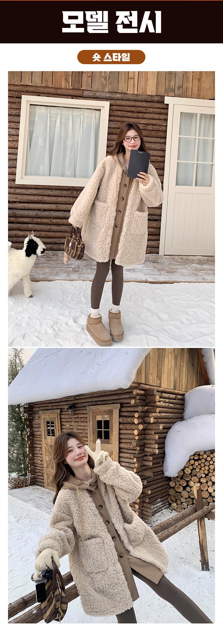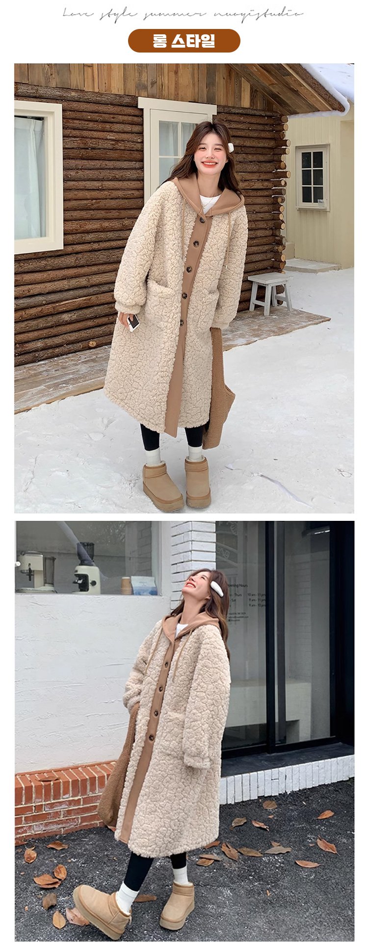 여성용 페이크 레이어드 숏/룽 램스울 코트