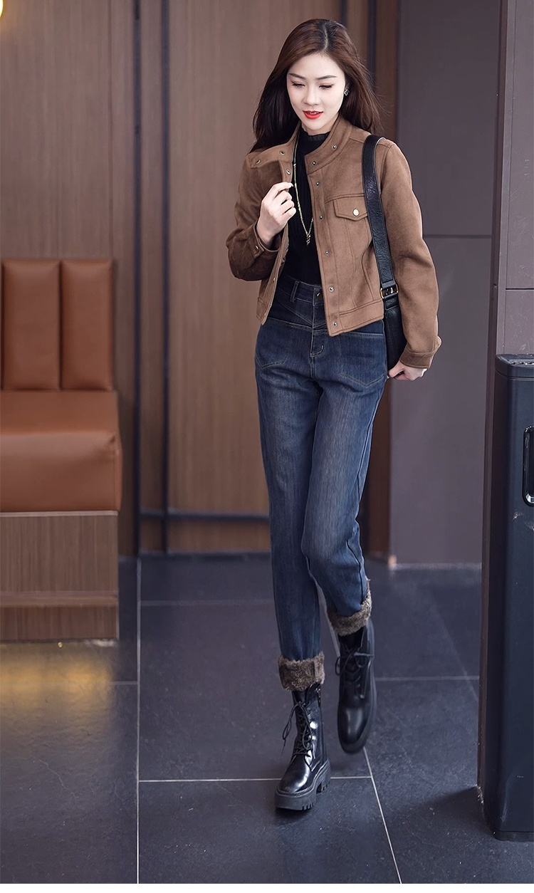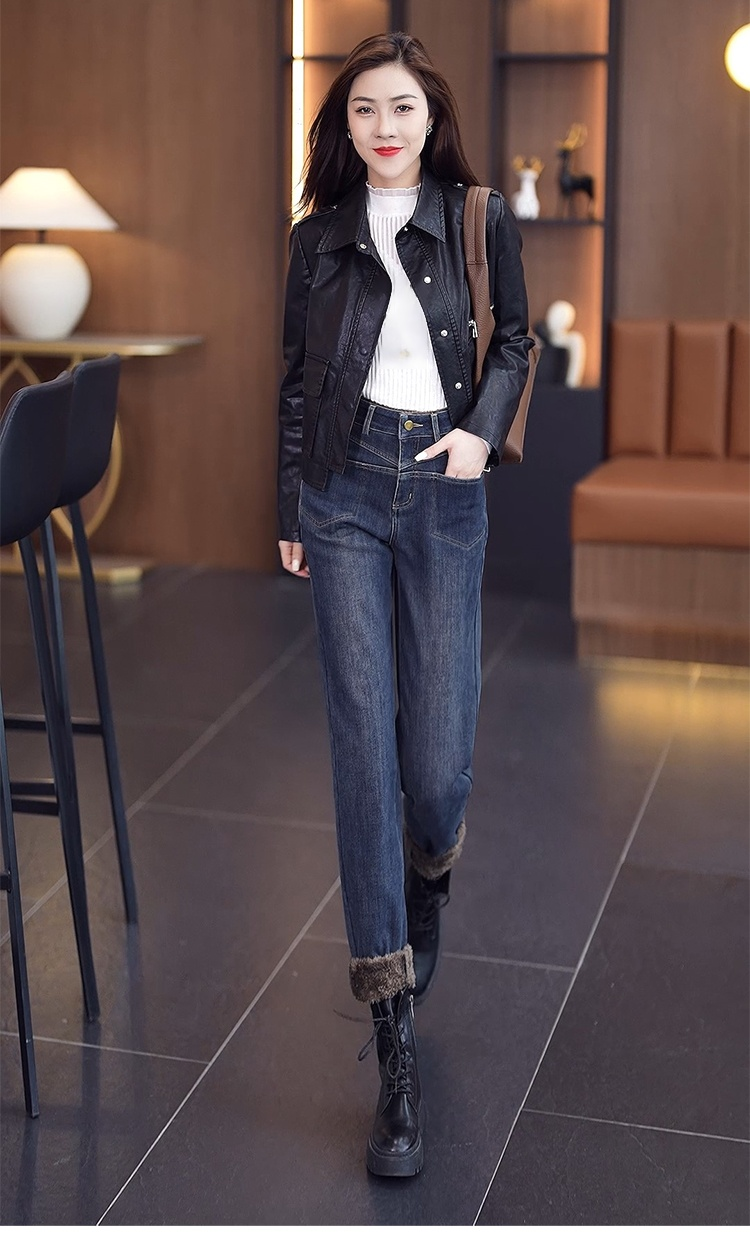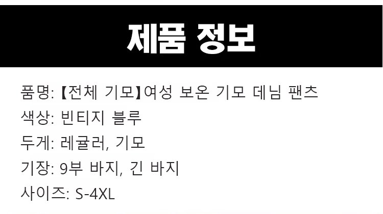 【전체 기모】여성 보온 기모 데님 팬츠