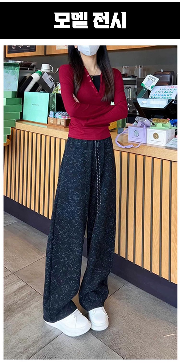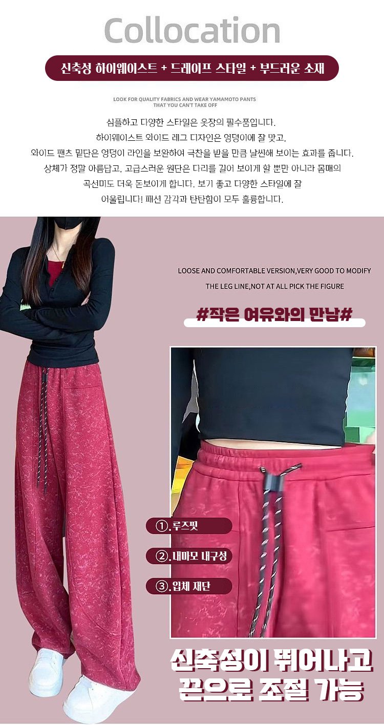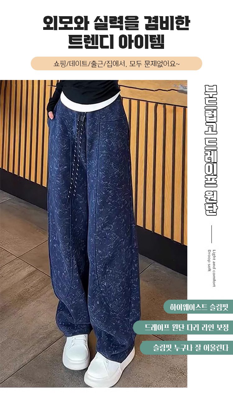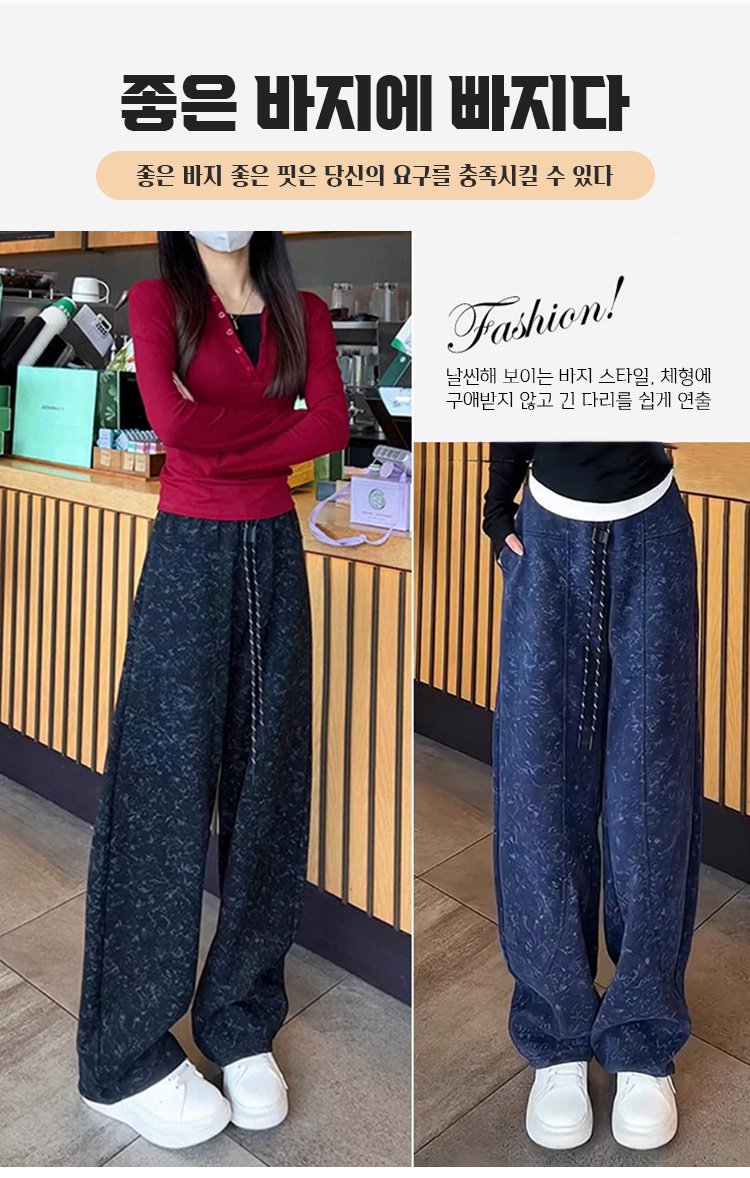 가을 겨울 여성 드레이프 웨이스트 타이다이 기모 와이드 팬츠