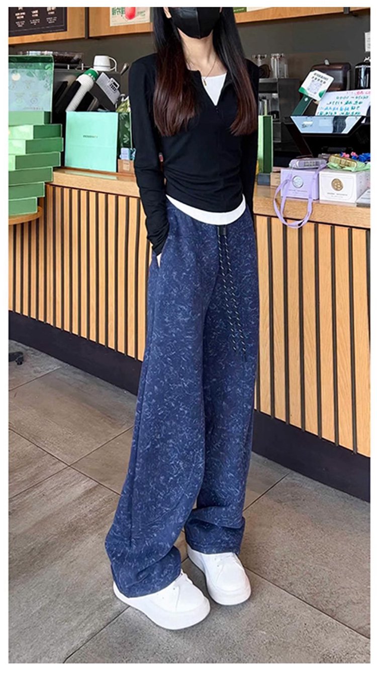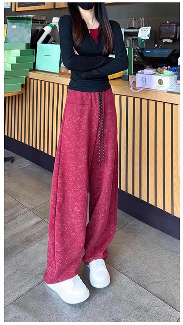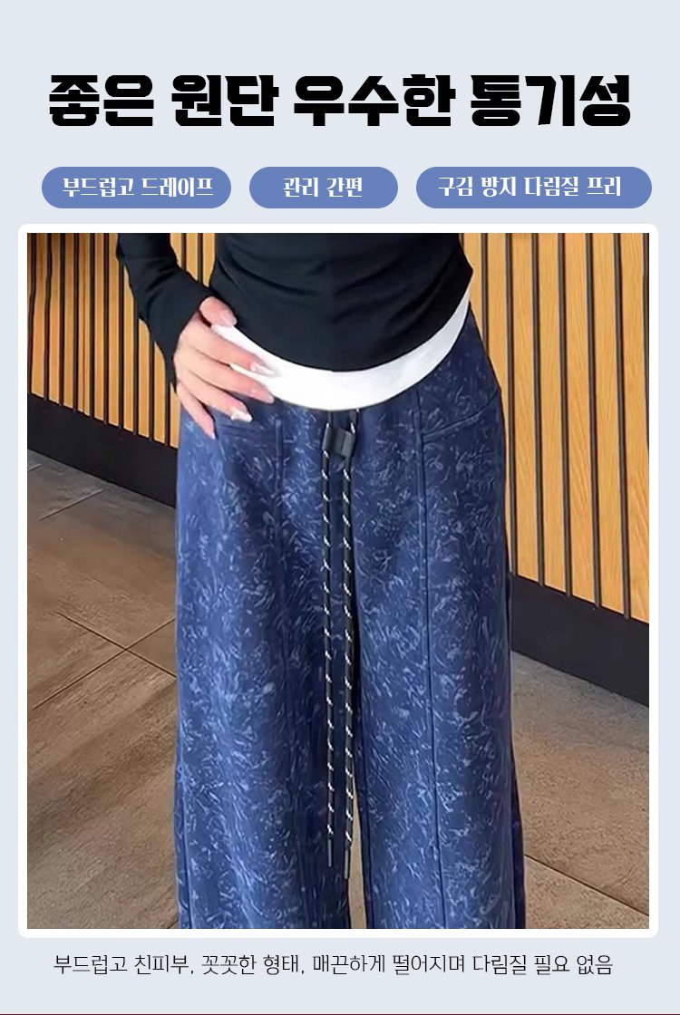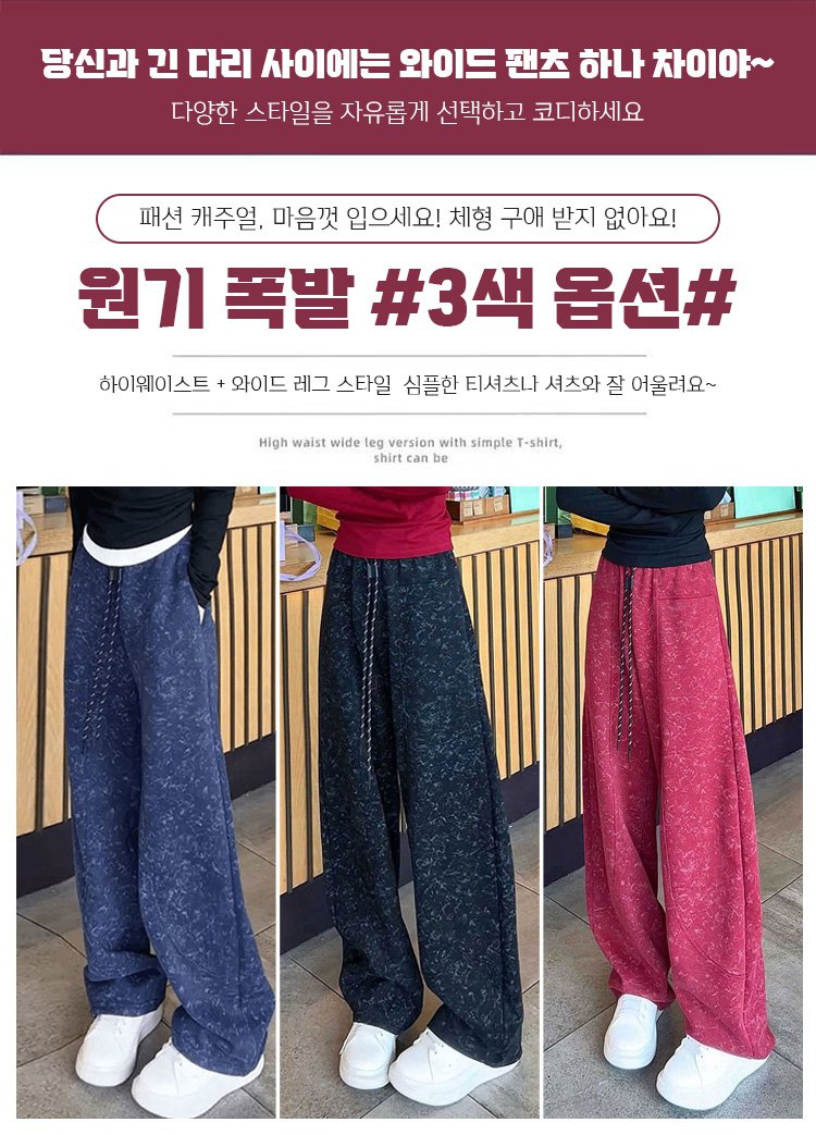 가을 겨울 여성 드레이프 웨이스트 타이다이 기모 와이드 팬츠
