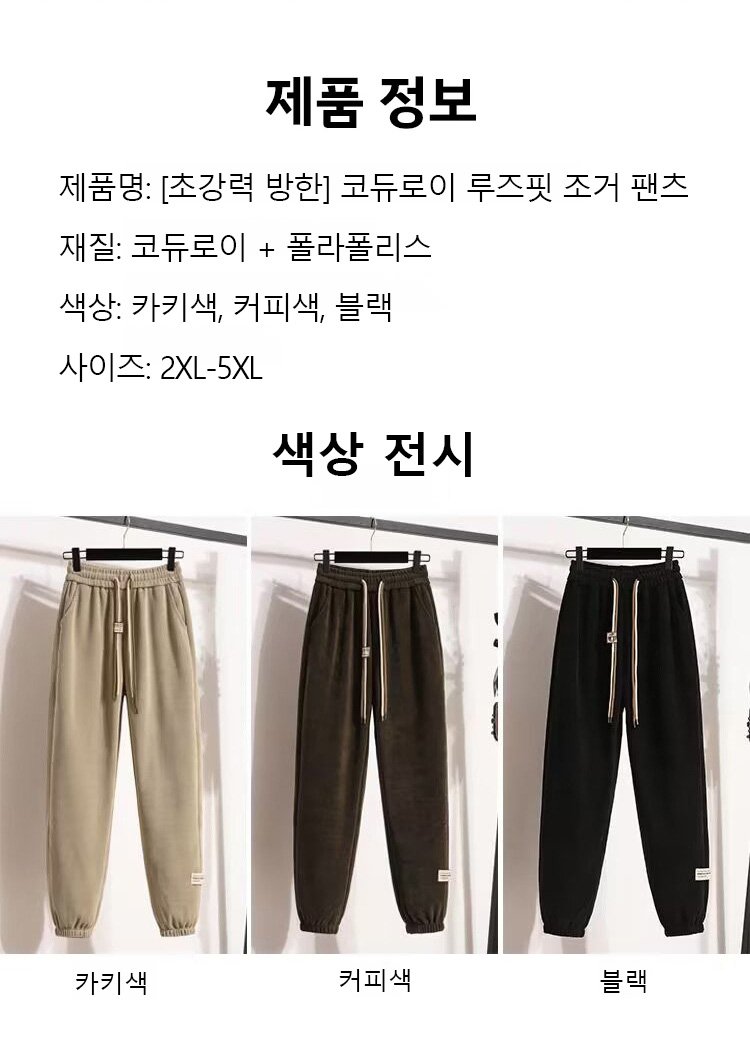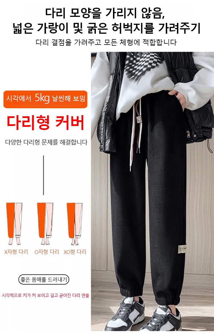 [초강력 방한] 여성용 코듀로이 루즈핏 조거 팬츠